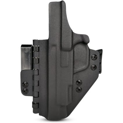 é um acessório ao coldre que remete a uma garra de cinto instalada na direção do guarda mato. Sua utilização é por dentro da roupa e tem como função rebater a base do carregador para junto ao corpo, diminuindo a marca da arma debaixo da camisa. É mais aconselhável para usuários que porte arma de fogo na linha ventral entre 12h-1h. Nossos flaps são fabricados em Kydex preto com .125” (3,175mm) de espessura em formato de “V” e angulado contra o cinto para aumentar a estabilidade na cintura. É opcional e agrega 40,00 no valor do equipamento, exceto para os modelos Sidecar Articulado (AIWB.ART) e IWB Double Belt (IWB.DB) que já estão incluídos.